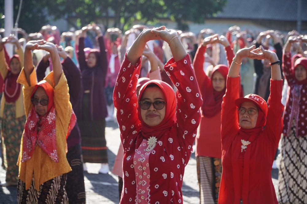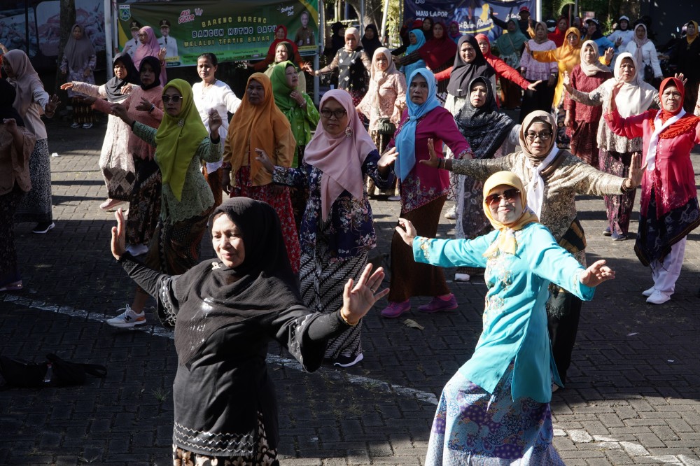 Suasana terasa semakin istimewa ketika para peserta tampil anggun mengenakan kebaya. Balutan busana tradisional ini menjadi simbol peringatan Hari Kartini, sekaligus mencerminkan semangat perempuan yang tetap aktif, sehat, dan berdaya tanpa meninggalkan identitas budaya. Di tengah gerak senam yang dinamis, kebaya justru menjadi penegas bahwa tradisi dan gaya hidup sehat dapat berjalan beriringan.