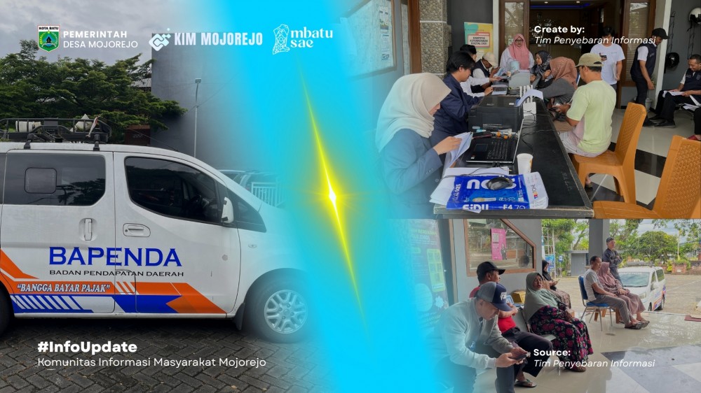 Rabu, 22 April 2026, suasana teras Kantor Desa Mojorejo tampak lebih ramai dari biasanya. Sejak pagi hari, warga mulai berdatangan untuk memanfaatkan layanan mobil keliling Pajak Bumi dan Bangunan Perdesaan dan Perkotaan (PBB-P2) yang diselenggarakan oleh Badan Pendapatan Daerah (Bapenda) Kota Batu. Layanan ini berlangsung mulai pukul 09.00 hingga 14.00 WIB, dan menjadi salah satu upaya jemput bola pemerintah daerah dalam mendekatkan pelayanan publik kepada masyarakat.